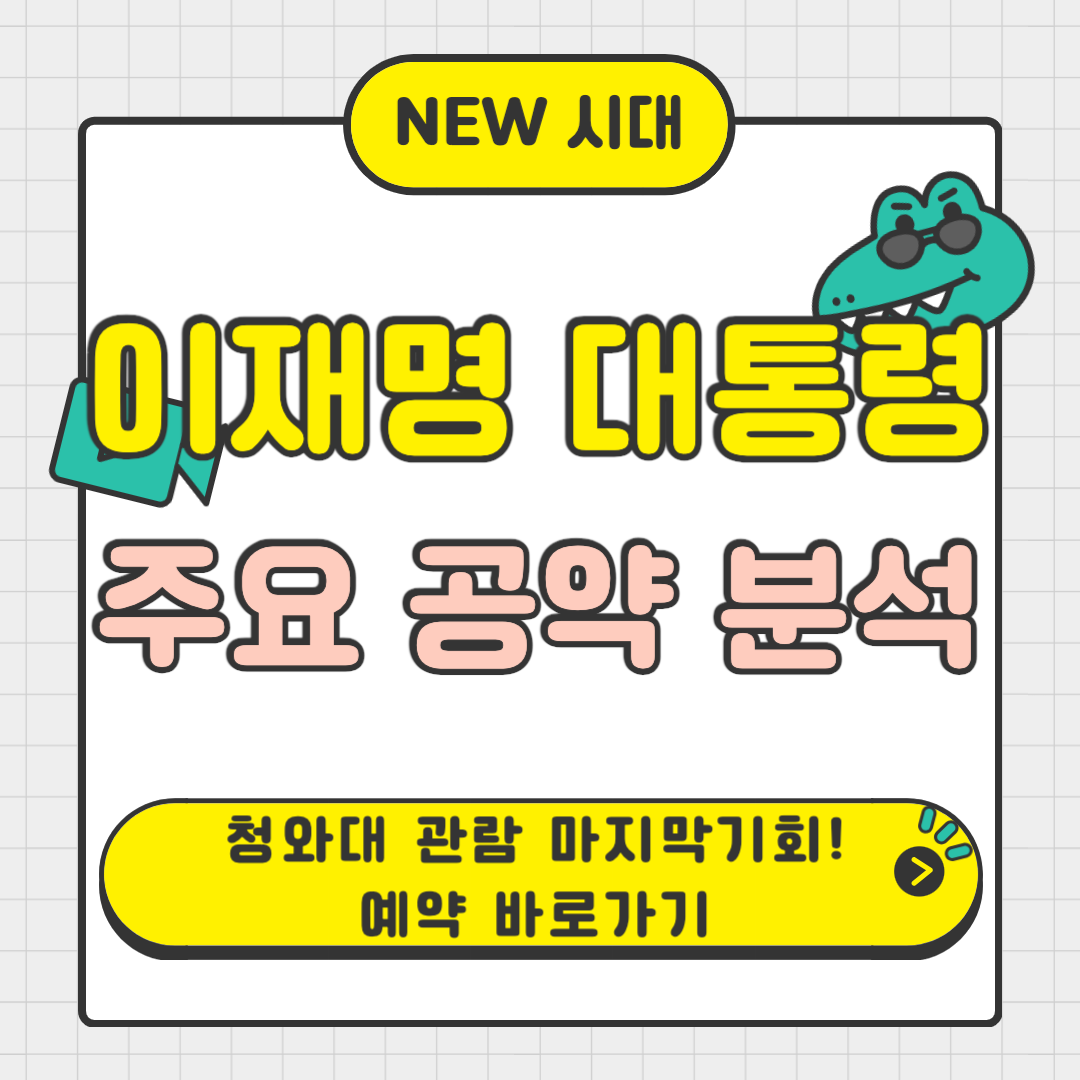 이재명 대통령의 공약을 분야별로 정리하고 향후 변화까지 분석했습니다. 또한 오는 9월 대통령의 집무실이 청와대로 바뀐다고 합니다! 3개월 밖에 남지 않은 요즘, 청와대 관람 마지막 기회! 꼭 신청해서 다녀오세요. 빠르게 공약 전체 내용을 보시려면 아래 버튼을 통해 빠르게 확인해보세요!!